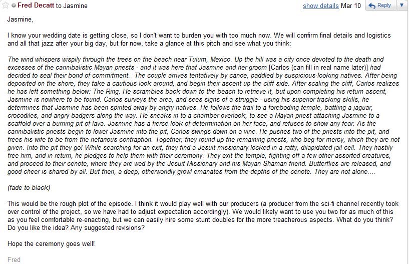 On top of a Mayan Temple! She also explains on her site her intention to be married by a Mayan Shaman in an old Cenote while releasing butterflies at the conclusion of the ceremony. This is roughly the plot of Choose Your Own Adventure #5, Mystery of the Maya